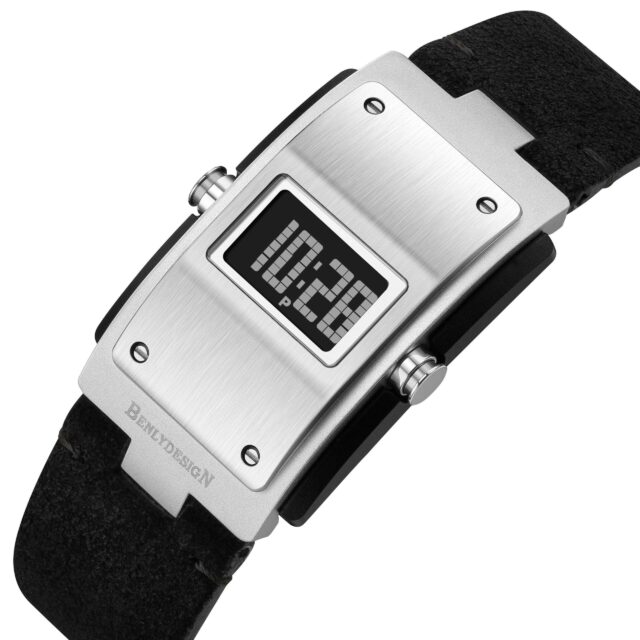 The BENLYDESIGN M400 is a tribute to the Y2K era when design was bold, digital, and unafraid of looking futuristic. With its rectangular brushed-metal case, exposed screws, and pixelated LCD display, this timepiece channels the raw energy of early 2000s cyberpunk style.