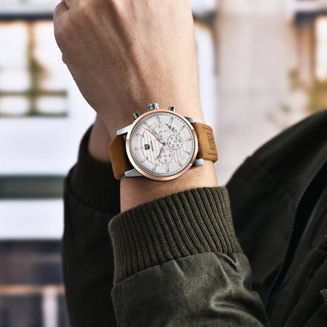 ⭐️⭐️⭐️⭐️⭐️ – “Classic look, feels premium. The leather strap is comfortable and the chronograph works perfectly.” – Daniel R.