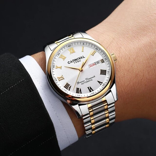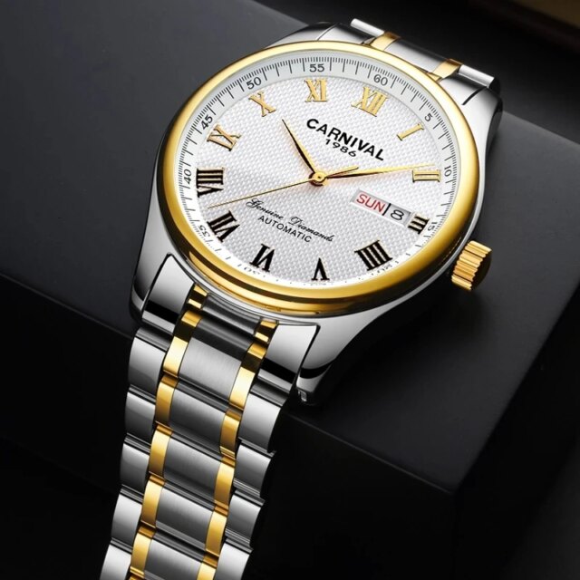 The Carnival Business Series Automatic is built for professionals and watch enthusiasts who value clean design and dependable performance. Its 39mm stainless steel case provides a comfortable fit, while the refined Roman numeral markers bring a sense of classic sophistication.