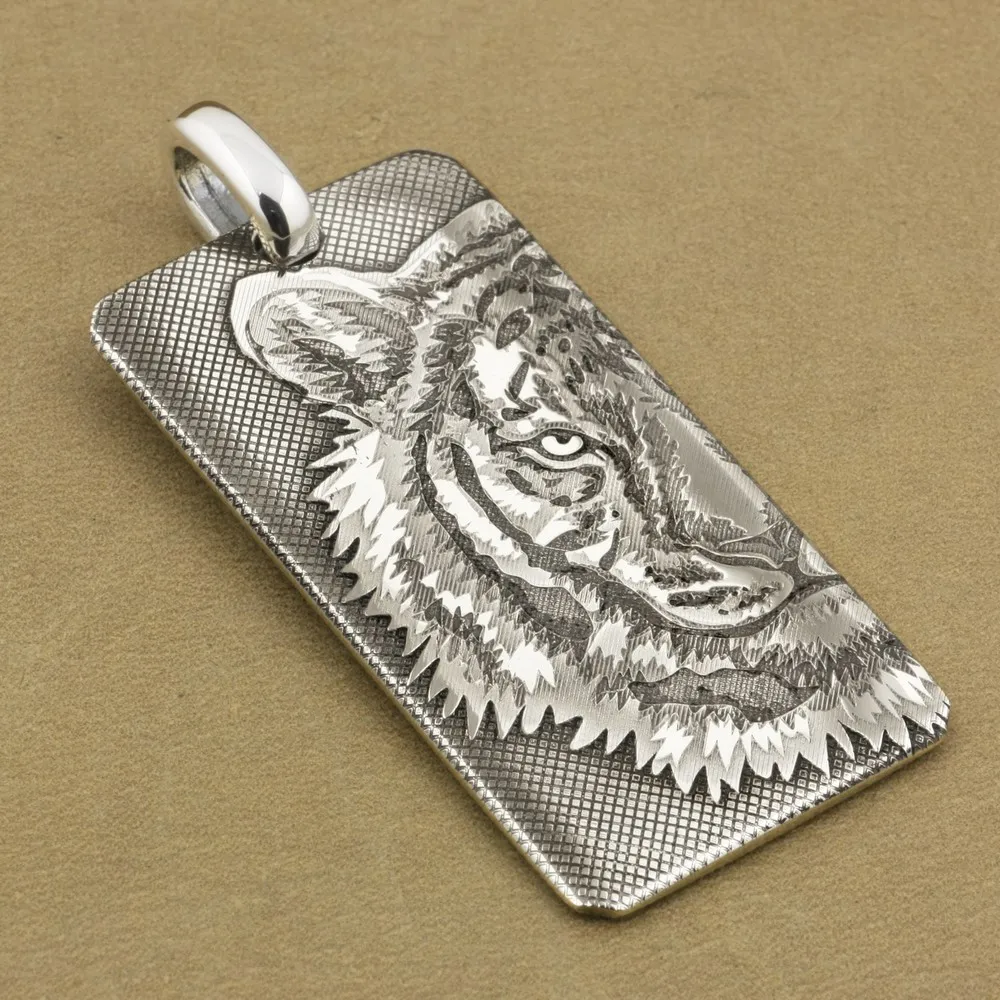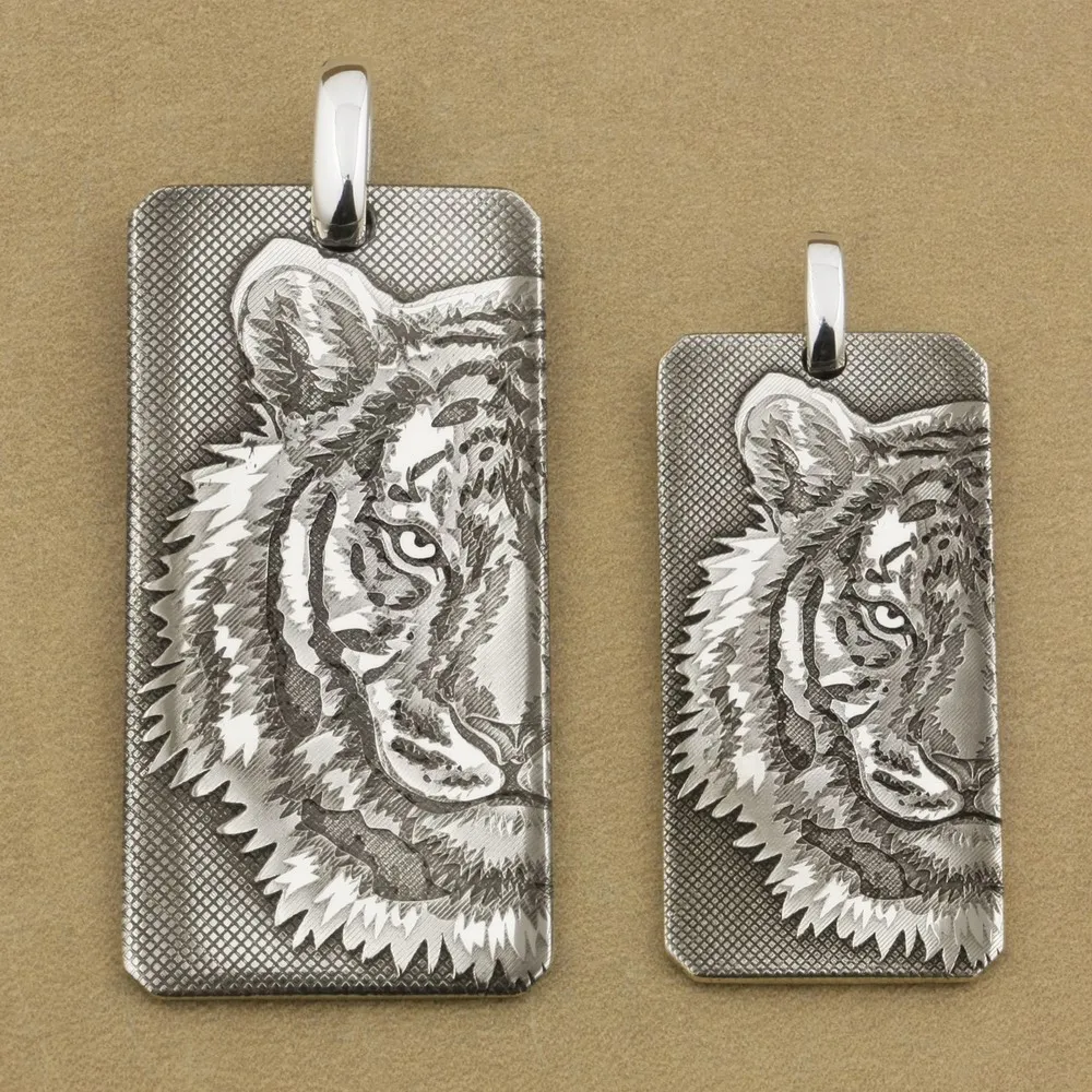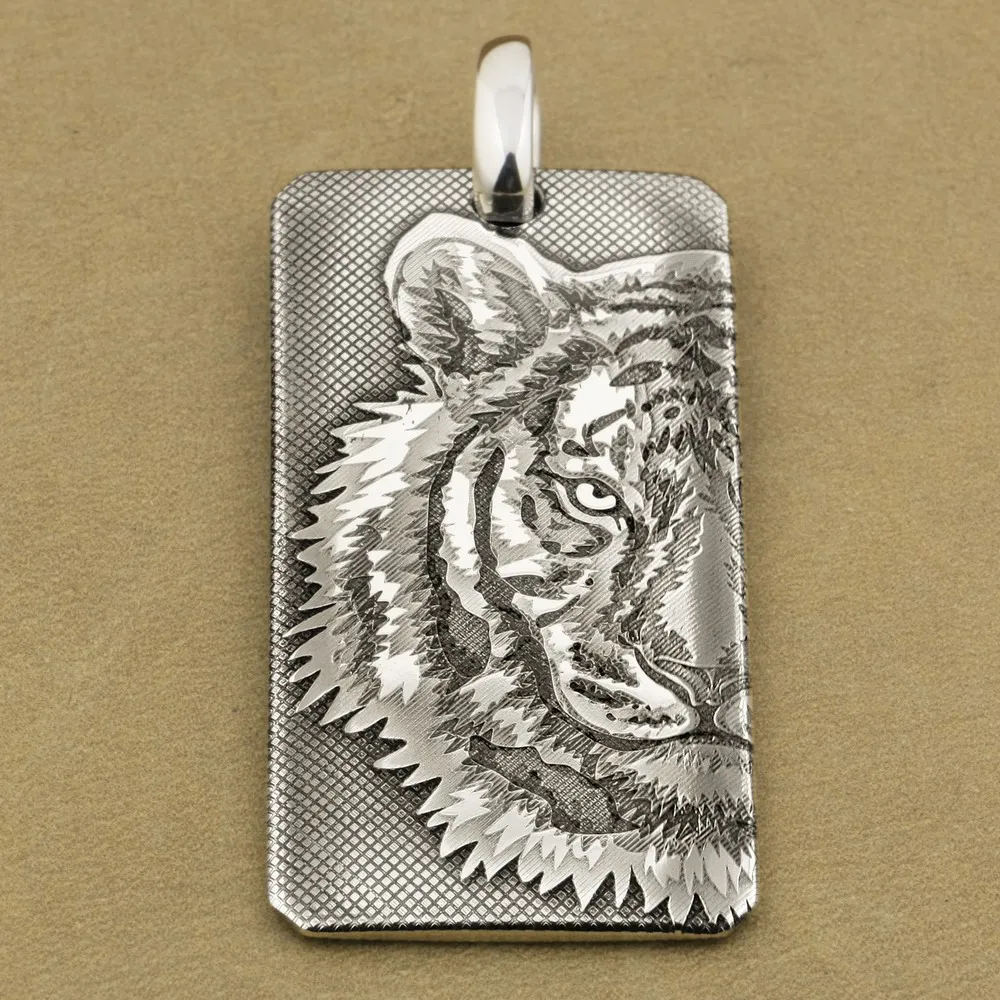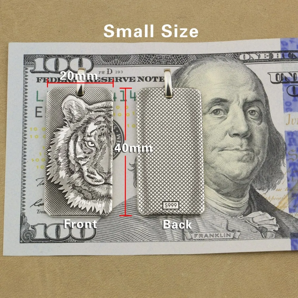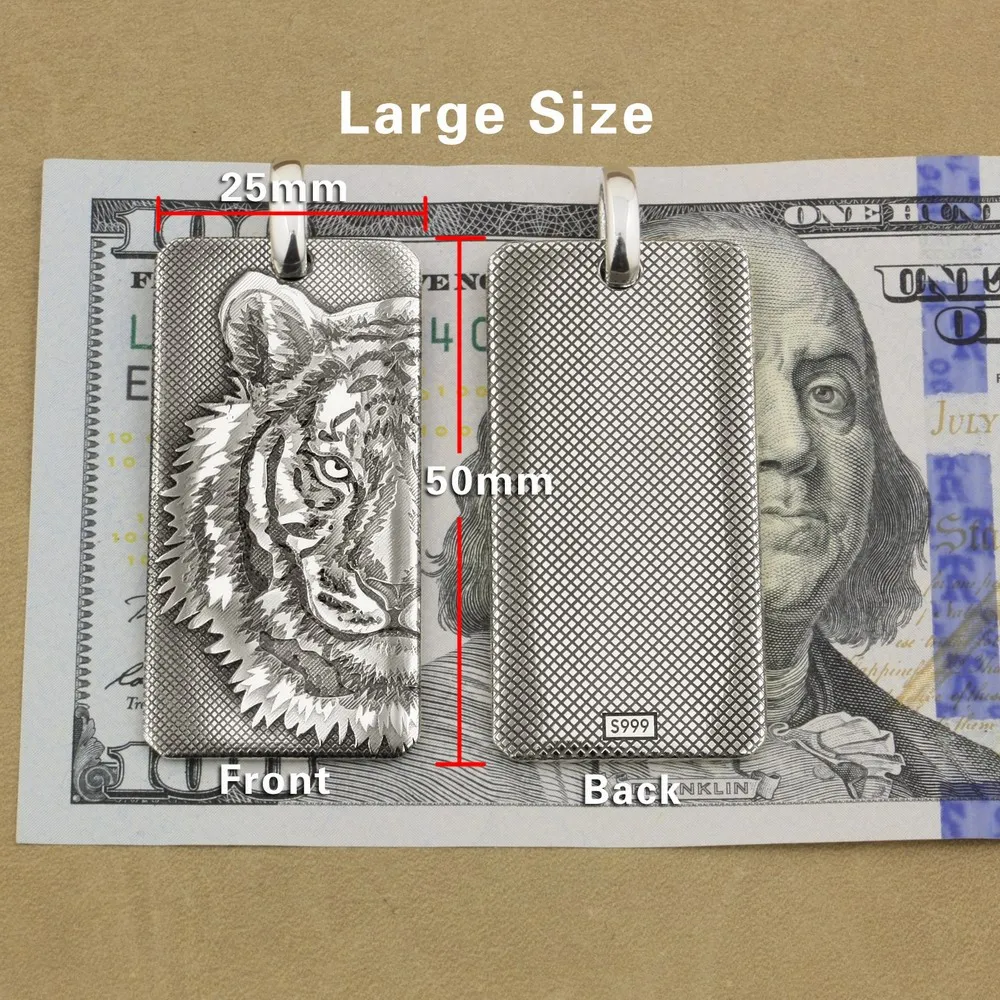 Back in stock: enjoy our ultra-hot Engraved 999 Pure Silver Tiger King Dog Tag Pendant!