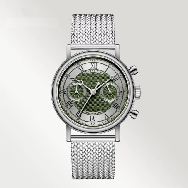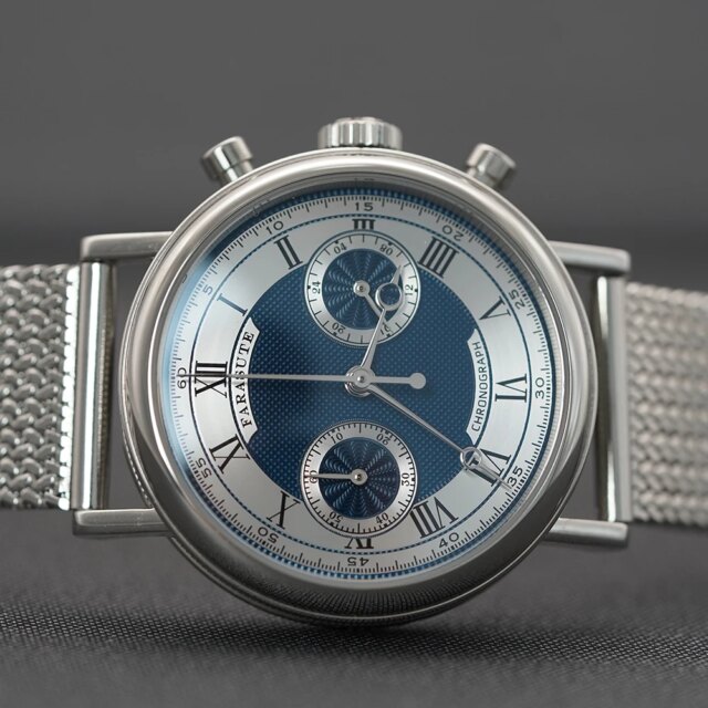 FARASUTE NL-007S Chronograph Watch – Seiko VK64 Movement | Stainless Steel Mesh | Roman Dial | Sapphire Crystal | 38mm
