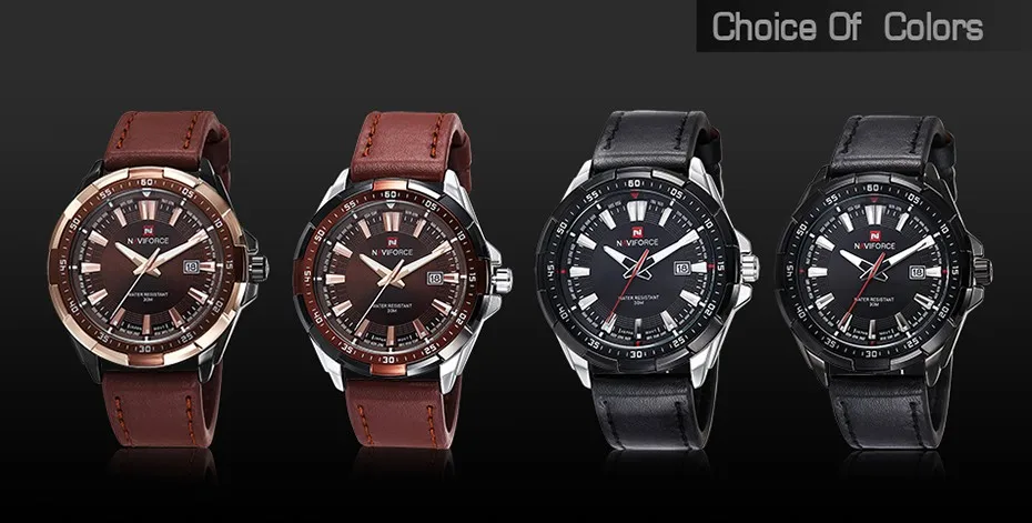 You can see all the available product options in the product description, so ADD TO CART whichever Naviforce Quartz Men Military Leather Sport Watch you prefer.