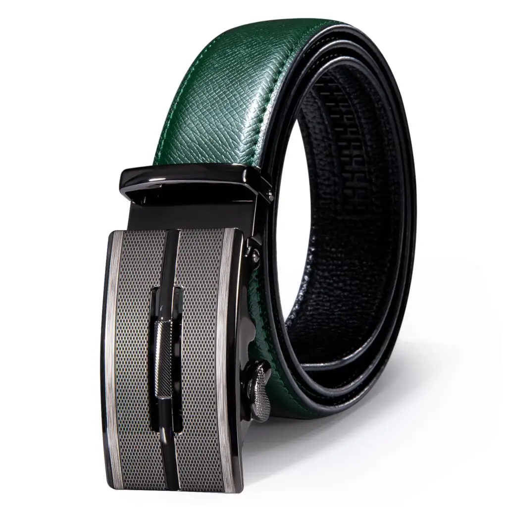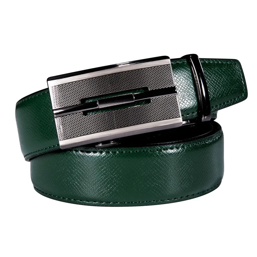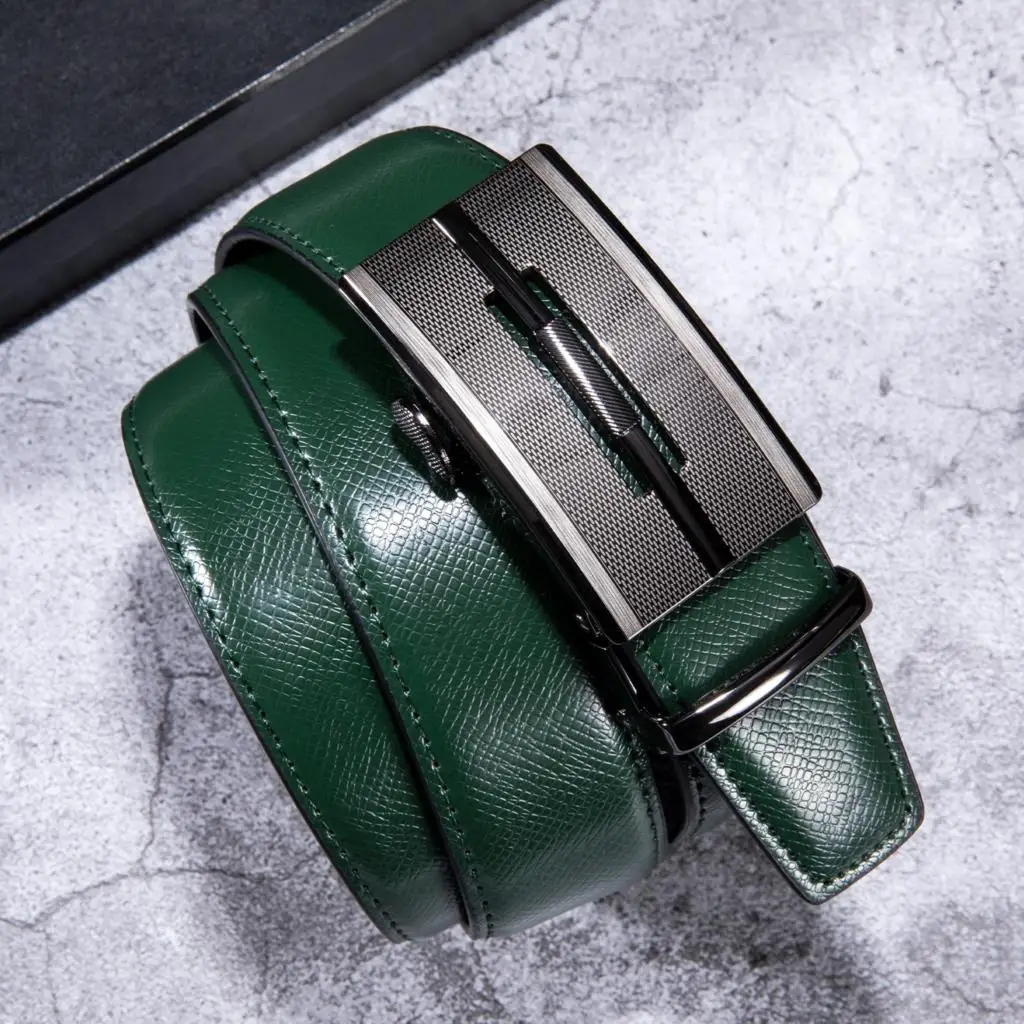 The Men’s Automatic Ratchet Belt combines luxury styling with a state-of-the-art adjustment system for a perfect fit every time. Crafted from textured genuine leather in a deep green tone, this belt delivers durability, comfort, and a refined modern look. Whether worn with dress trousers, jeans, or business attire, it provides a polished finish suitable for any occasion.