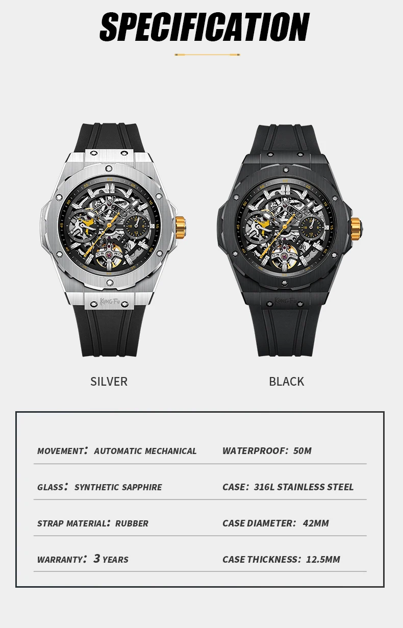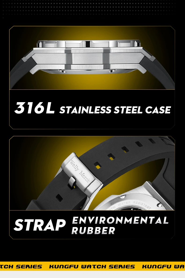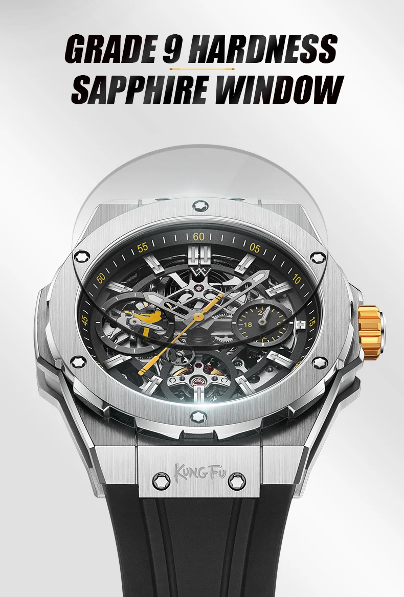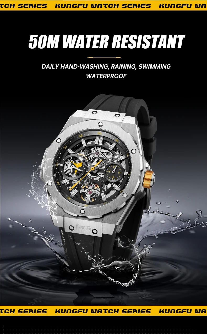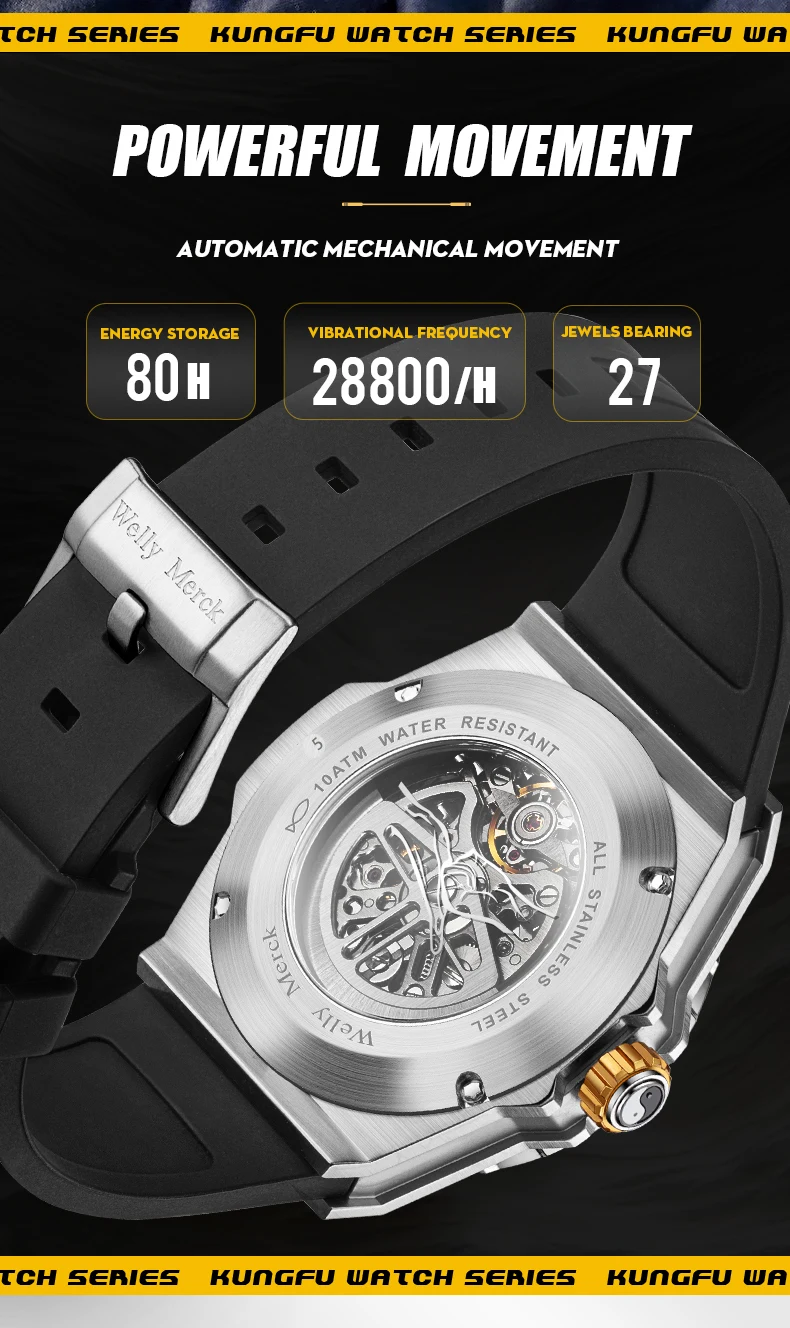 Channeling the rhythm and precision of martial arts, the WM-128M Kung Fu Skeleton Watch is a bold mechanical statement for those who appreciate fluid movement, kinetic art, and powerful symbolism. The skeletonized dial opens a window into the watch’s automatic heartbeat, while design details like the nunchaku-inspired yellow second hand, engraved “Kung Fu” script, and martial artist silhouette transform this timepiece into a wearable tribute to discipline and strength.