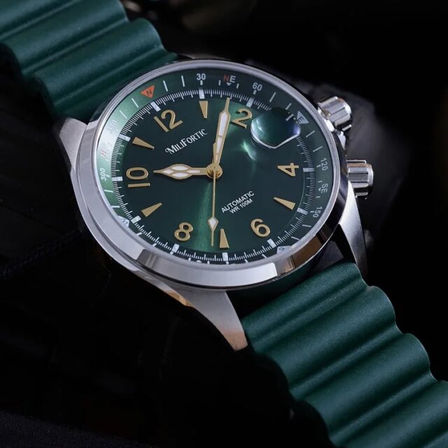 The Milifortic Climb Sport is inspired by classic military field watches, balancing rugged functionality with compact proportions. Its 39.5mm stainless steel case is refined yet durable, featuring screw-down crowns and an internal compass bezel controlled from the side — letting you orient directions without relying on tech.