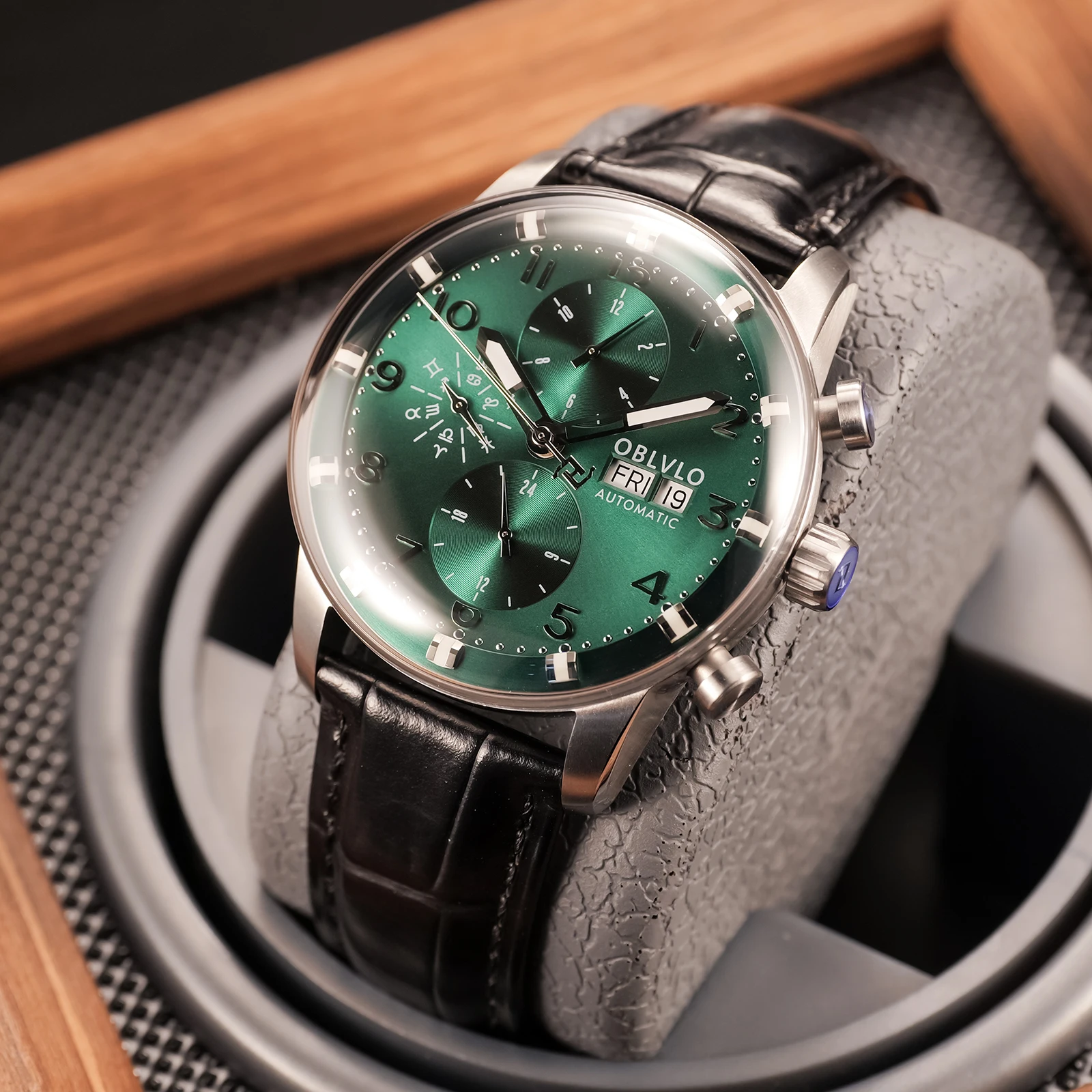 Experience timeless precision and style with the OBLVLO Automatic Full Calendar Watch — where modern mechanics meet classic design. Choose your dial color and elevate your collection today.