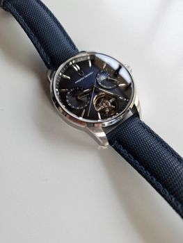 While not a full tourbillon complication (which costs thousands more), it provides the same aesthetic appeal and showcases the moving mechanics beautifully through both the front and rear sapphire glass.