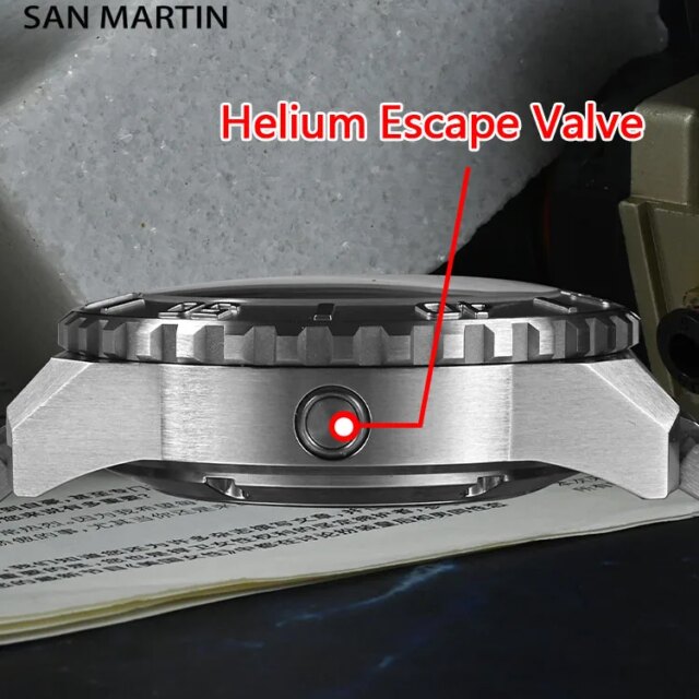 Rated for 1000 meters / 3300 ft, the SN0147-G is San Martin’s flagship dive instrument. Its 316 L steel case is built to withstand immense underwater pressure, while a manual helium escape valve ensures safe decompression during saturation dives.