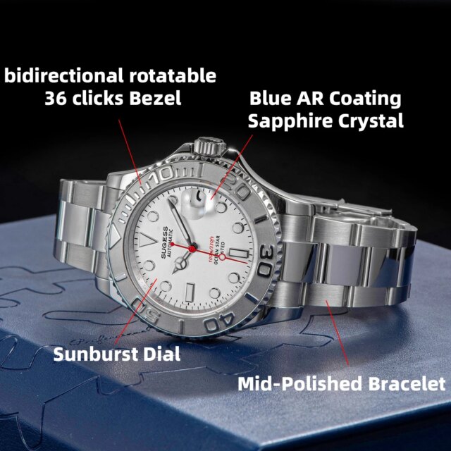 Every component — from the engraved bidirectional bezel to the luminous sunburst dial — reflects Sugess’s commitment to detail. It’s powered by Japan’s NH35A automatic movement, known for reliability and smooth performance.