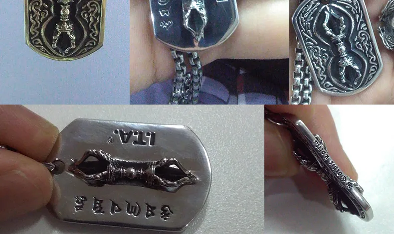vajra double face dog tag for men stainless steel mantra pendant arrived without defects. Thanks for secure packaging. I give you a 5 stars.